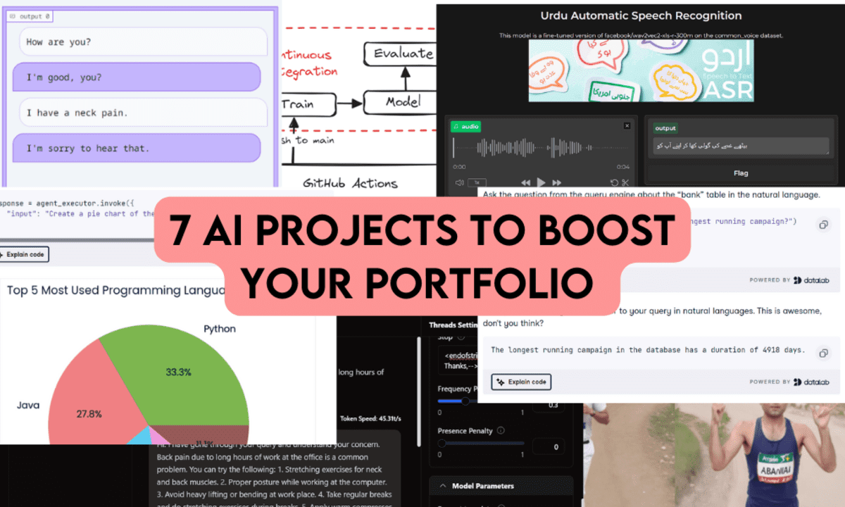 In this blog, we will review 7 AI portfolio projects that will boost your resume. These projects come with tutorials, source code, and other supportive materials to help you build proper AI applications.