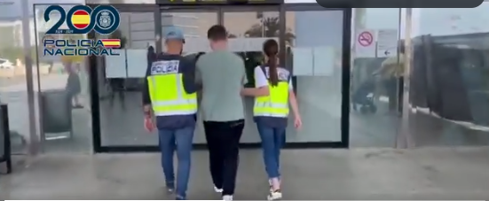Tyler Buchanan, being escorted by Spanish police at the airport in Palma de Mallorca in June 2024.