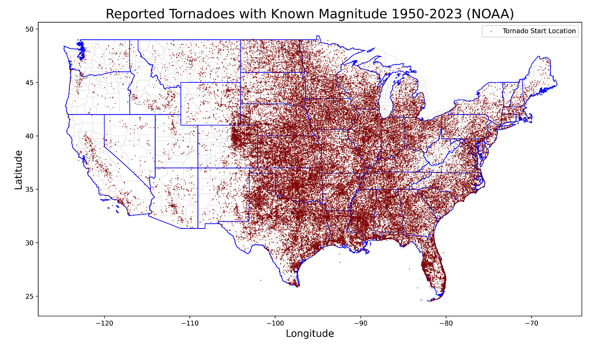 Analyze Tornado Data with Python and GeoPandas | by Lee Vaughan | Jan, 2025