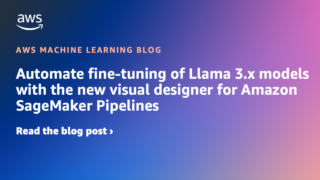 In this post, we walked you through a solution to fine-tune a Llama 3 model using the new visual editor for Amazon SageMaker Pipelines. We introduced the fine-tuning step to fine-tune LLMs, and the Execute code step to run your own code in a pipeline step. The visual editor provides a user-friendly interface to create and manage AI/ML workflows. By using this capability, you can rapidly iterate on workflows before executing them at scale in production tens of thousands of times. For more information about this new feature, see Create and Manage Pipelines. Try it out and let us know your thoughts in the comments!