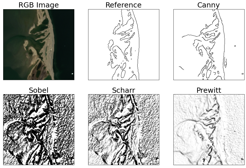 Image segmentation and edge detection are closely related tasks. Take this output from a coastal segmentation model for example: