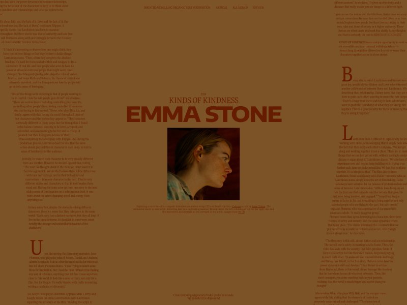 Using JavaScript and CSS, we’ll apply a sine wave to text in the left column and a cosine wave to the right, creating unique movements that adapt to scroll speed and direction. This interactive effect brings a smooth, fluid feel to typography, making it an interesting visual effect.