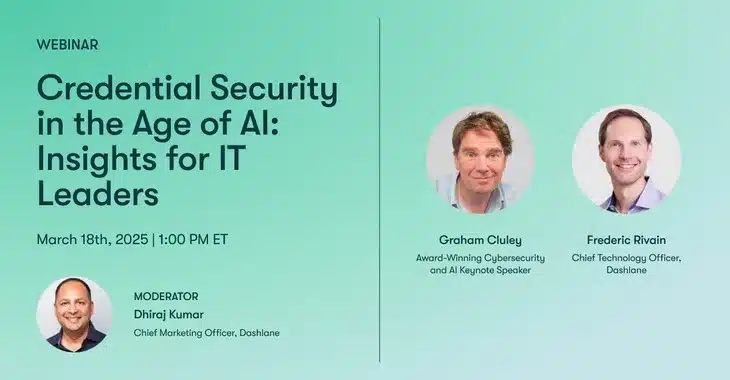 Join cybersecurity expert Graham Cluley and Dashlane CTO Frederic Rivain as they discuss AI’s impact on credential security and share valuable insights from our new State of Credential Security Report, including: