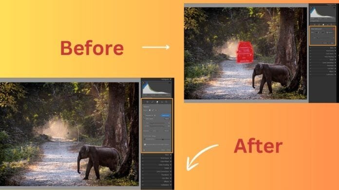 - Lightroom Works Its Magic: After youâve chosen the item, Lightroom will examine the picture and carry out the removal automatically. There will be other versions in the âVariationsâ section in addition to the altered image. Select the one that produces an edit that seems the most natural.