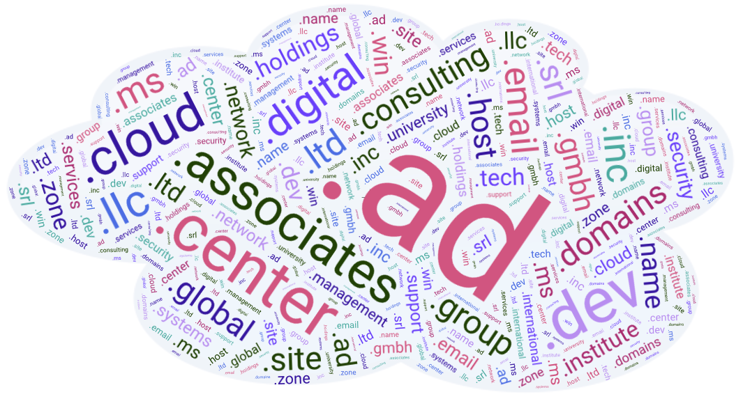 Caturegli has been scanning the open Internet for self-signed certificates referencing domains in a variety of TLDs likely to appeal to businesses, including .ad, .associates, .center, .cloud, .consulting, .dev, .digital, .domains, .email, .global, .gmbh, .group, .holdings, .host, .inc, .institute, .international, .it, .llc, .ltd, .management, .ms, .name, .network, .security, .services, .site, .srl, .support, .systems, .tech, .university, .win and .zone, among others.