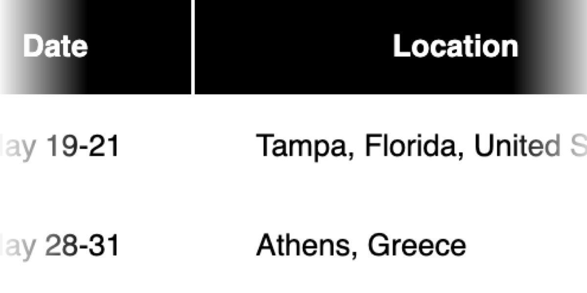 First, we’ll define our scrollable element with a mask that fades out the start and end of the container. For this example, let’s consider the infamous table that can’t be responsive and has to be horizontally scrollable on mobile.