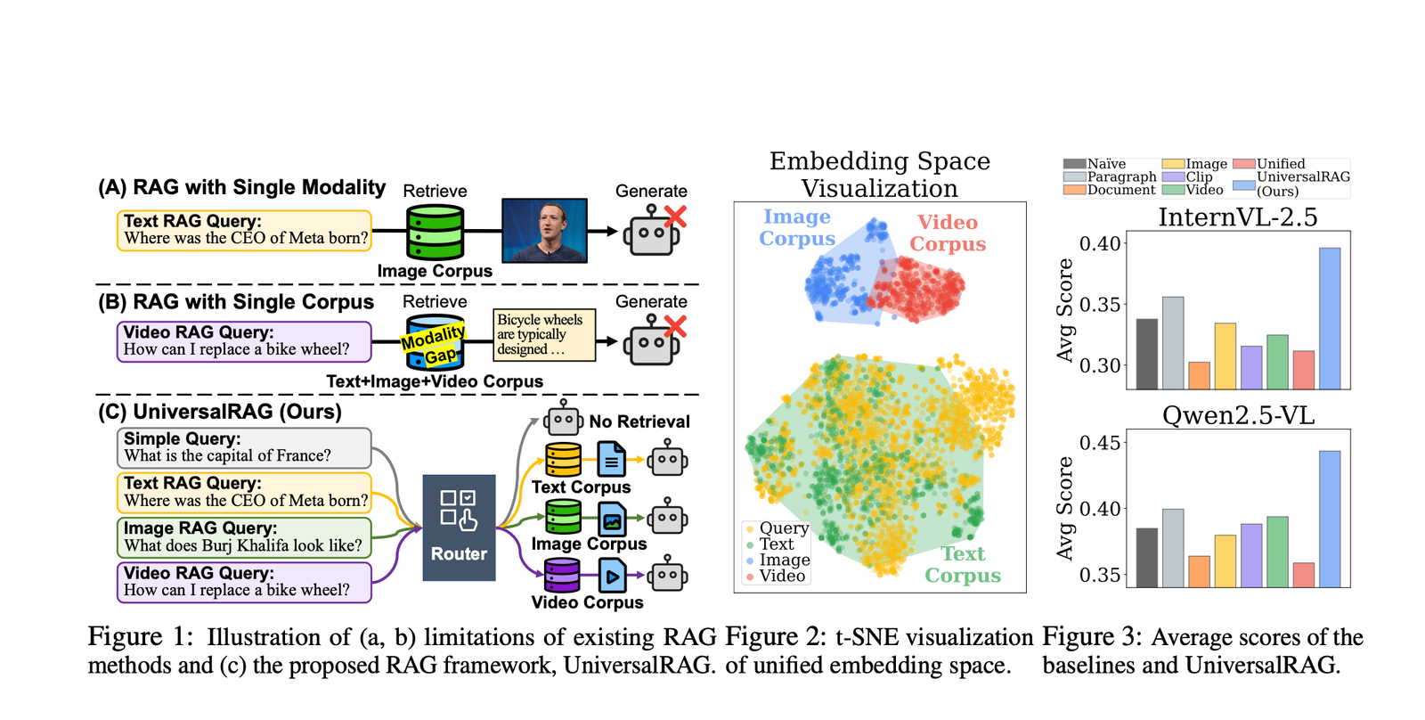 Multimodal Queries Require Multimodal RAG: Researchers from KAIST and DeepAuto.ai Propose UniversalRAG—A New Framework That Dynamically Routes Across Modalities and Granularities for Accurate and Efficient Retrieval-Augmented Generation