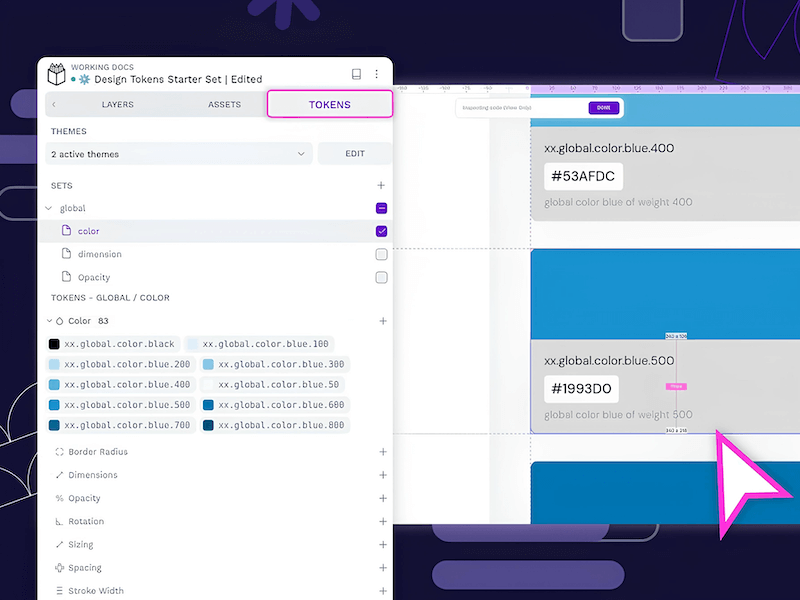 Design tokens are a way to describe the small but important visual decisions that make up your user interface. Things like primary colors, heading sizes, border radius, or spacing between elements. Instead of hardcoding those values in a design file or writing them directly into code, you give each one a name and store it as a token.