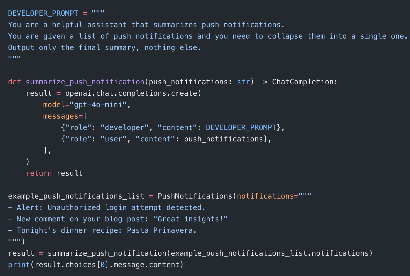 OpenAI’s cookbook example walks through building a regression evaluator using the API. Here’s a simplified version: