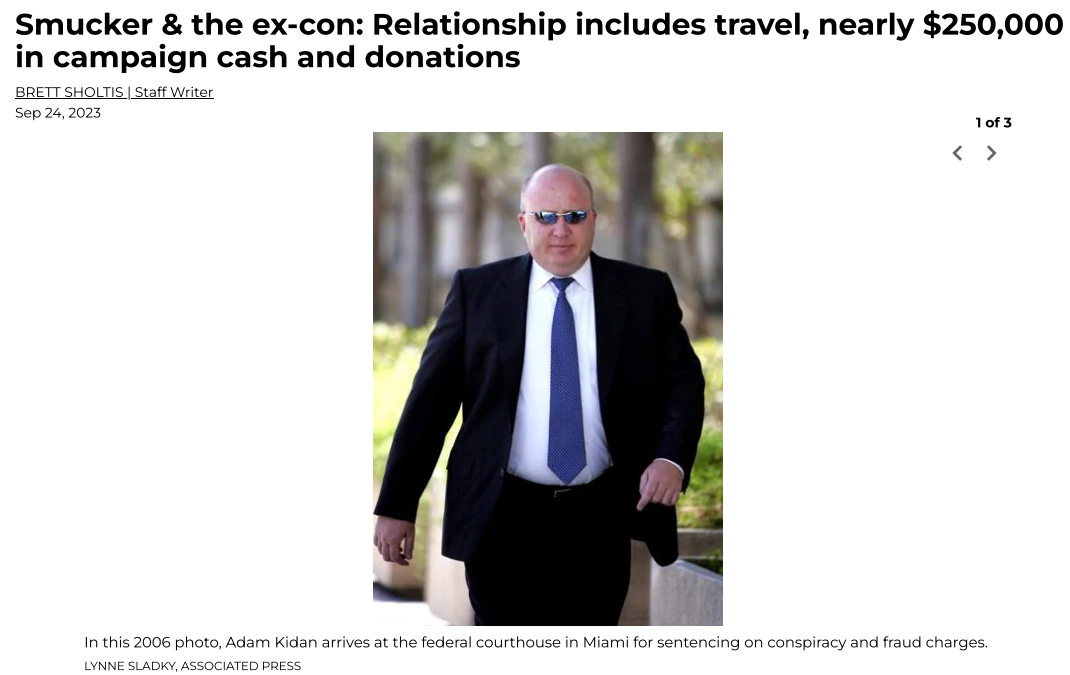 In Sept. 2023, the Pennsylvania news outlet LancasterOnline.com published a story about Adam Kidan, a wealthy businessman with a criminal past who is a major donor to Republican causes and candidates, including Rep. Lloyd Smucker (R-Pa).