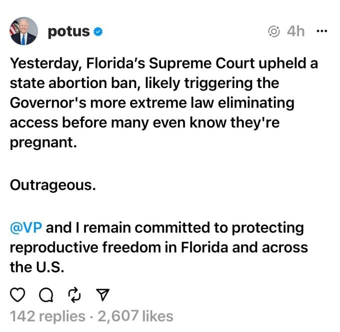 The fediverse — the name for the social network made of interconnected servers, like Mastodon and others — just got another boost of legitimacy Tuesday as the @Potus (President of the United States) account on Instagram Threads shared its first federated post. The account operated by Biden’s team published a message regarding the president’s support of reproductive freedom on Threads, Meta’s up-and-coming Twitter/X competitor.
