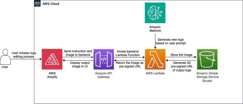 Amazon Bedrock enables access to powerful generative AI models like Stable Diffusion through a user-friendly API. These models can be integrated into the logo design workflow, allowing designers to rapidly ideate, experiment, generate, and edit a wide range of unique visual images. Integrating it with the range of AWS serverless computing, networking, and content delivery services like AWS Lambda, Amazon API Gateway, and AWS Amplify facilitates the creation of an interactive tool to generate dynamic, responsive, and adaptive logos.