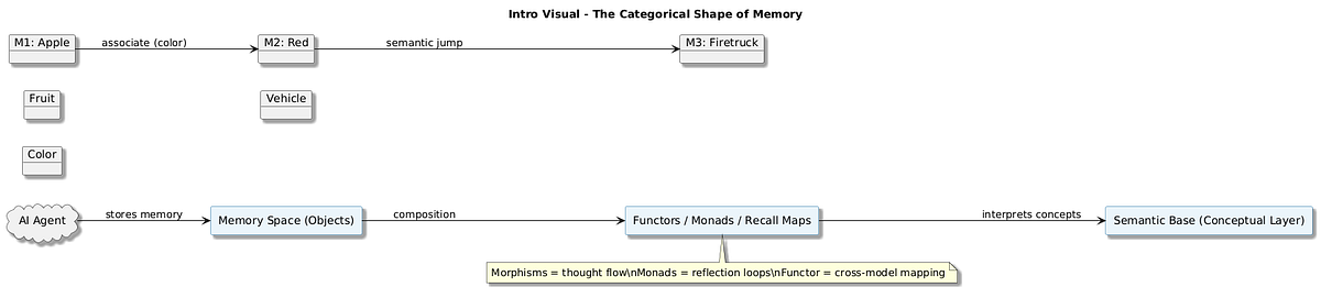 A recursive diagram showing memory passed through T, then T(T), with arrows from base to enriched context, forming a layered monadic bubble.