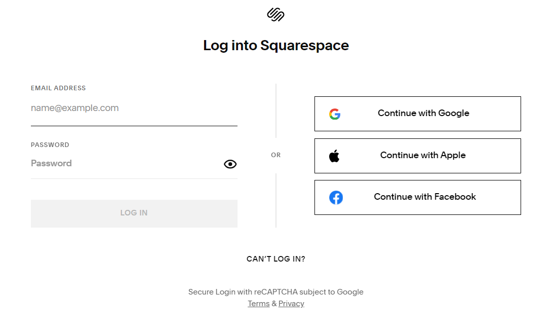 Until this past weekend, Squarespace’s website had an option to log in via email.