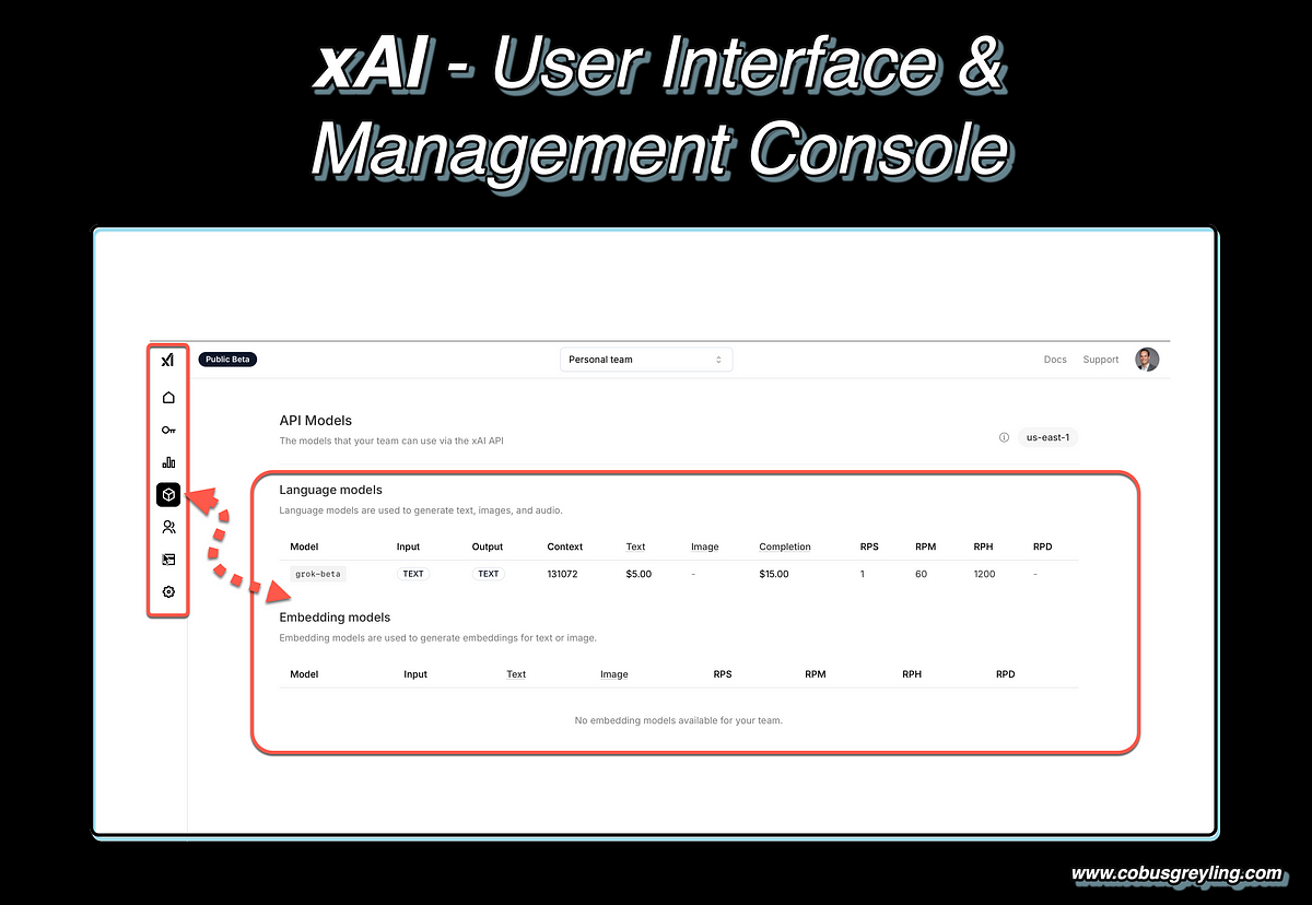 Below is working Python example code that shows a xAI completion implementation where a conversational UI is defined, with a system description and a user description.
